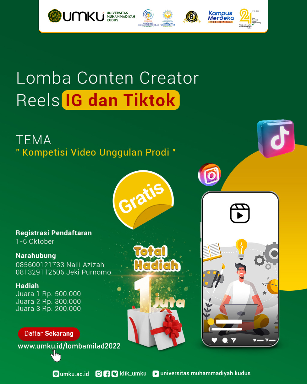 LOMBA CONTENT CREATOR dalam rangka Milad Universitas Muhammadiyah Kudus ke-24 sudah dibuka.